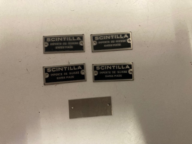 Scintilla fuse box and regulator name tag